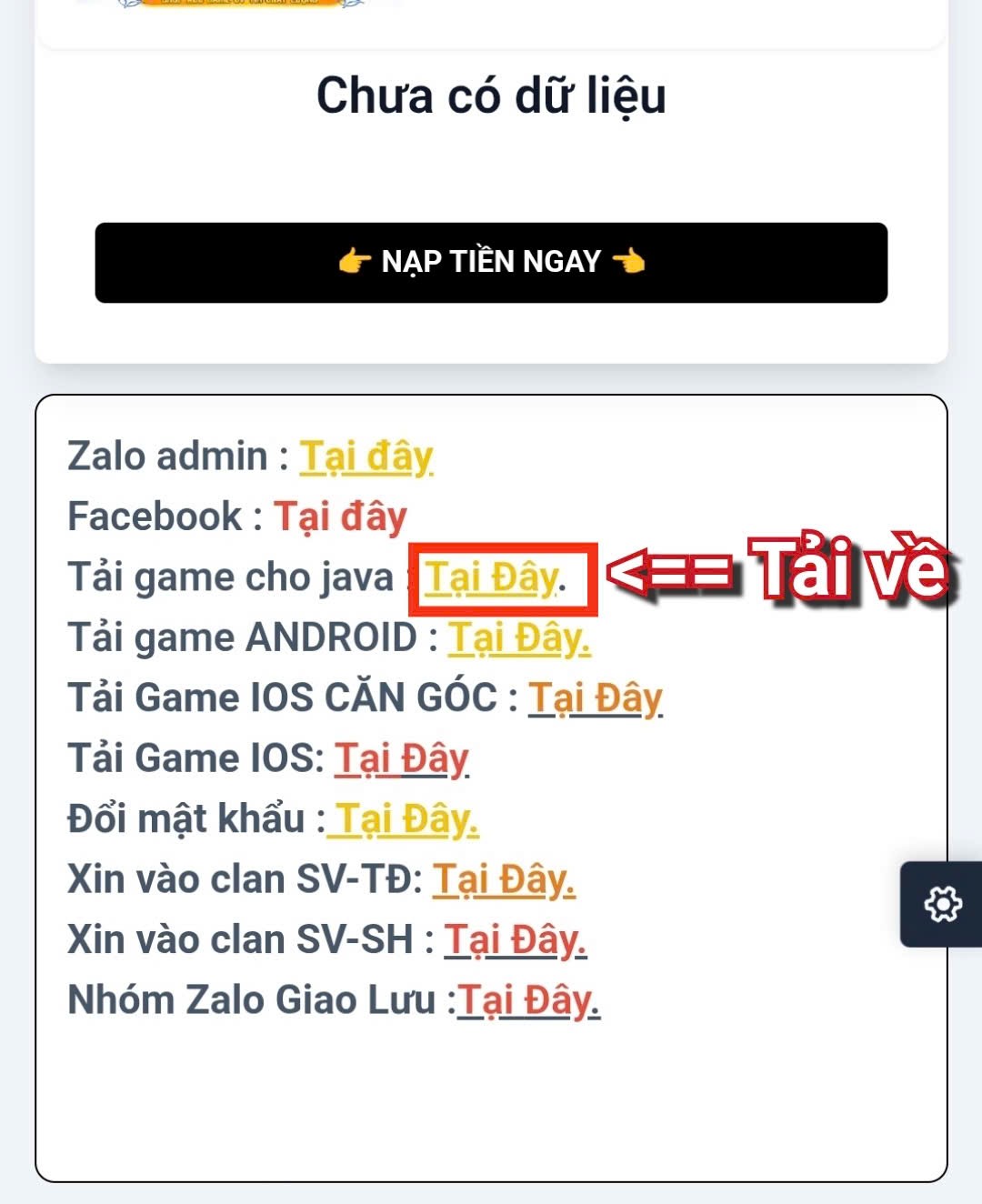 Bước 2: Quay lại trang chủ để tải bản Java để chơi trên giả lập